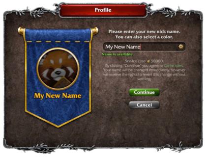Please note, changing your username costs 50,000 gold. This fee is in place to discourage frequent name changes.